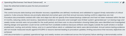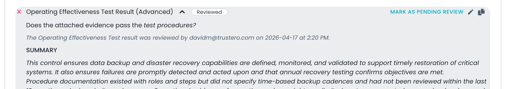 Marking control test results as Reviewed provides a simple way to track which AI-generated results have been reviewed.