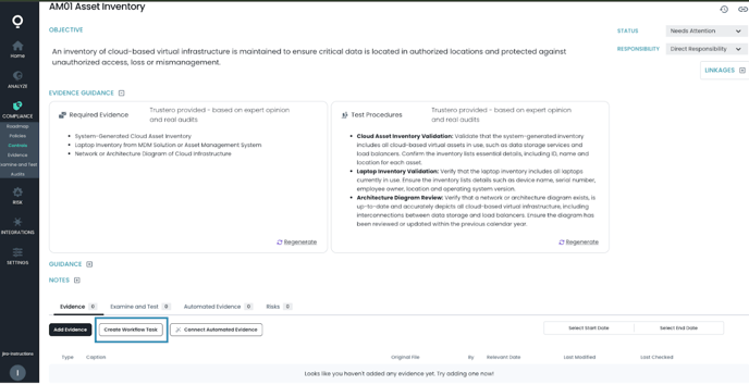 Click the Create Workflow Task button under the Evidence Tab