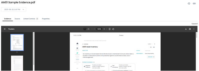 You can also visit the Control show page to view the evidence listing