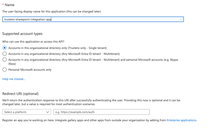 Microsoft Cloud Platform Applications integrate with 3rd party applications, like Trustero, through Microsoft Azure’s App Registrations.