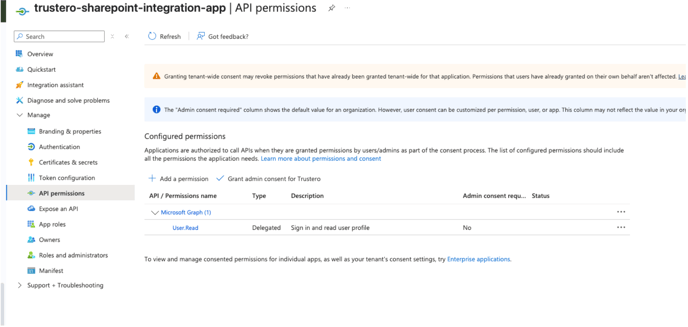 - Finally, click the Grant admin consent button