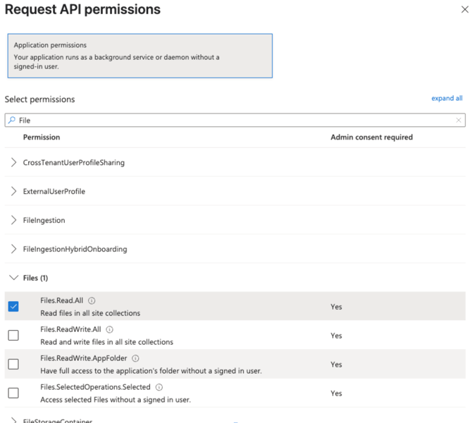 Sites.Read.All, Files.Read.All |