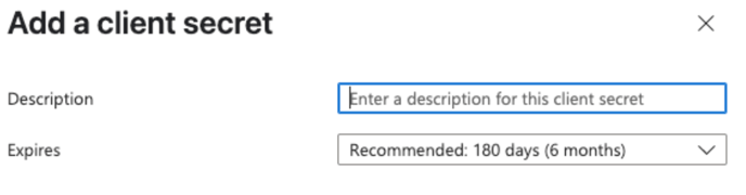 - Under Manage > Certificates & secrets, click New client secret button