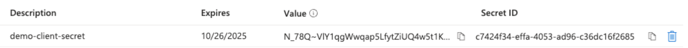 - After the confirmation, your new client secret value should be displayed. Remember to keep a copy of this information.