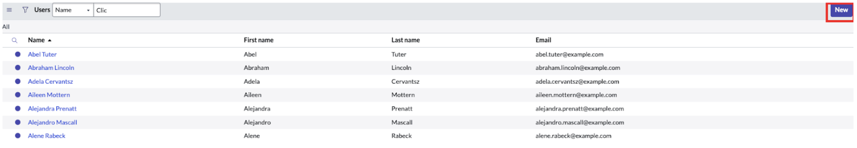 - You will be redirected to the user list, click the New Button