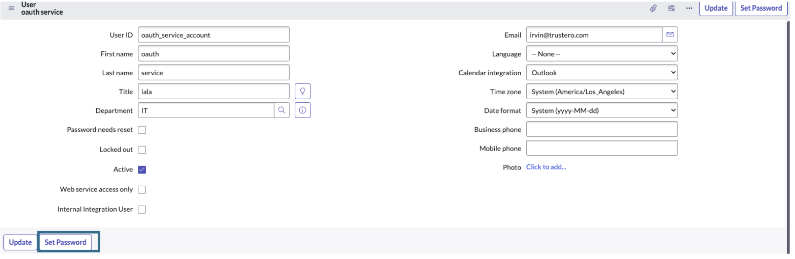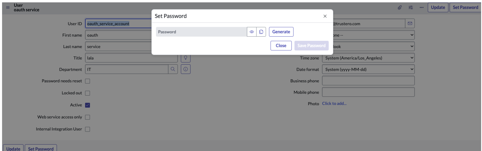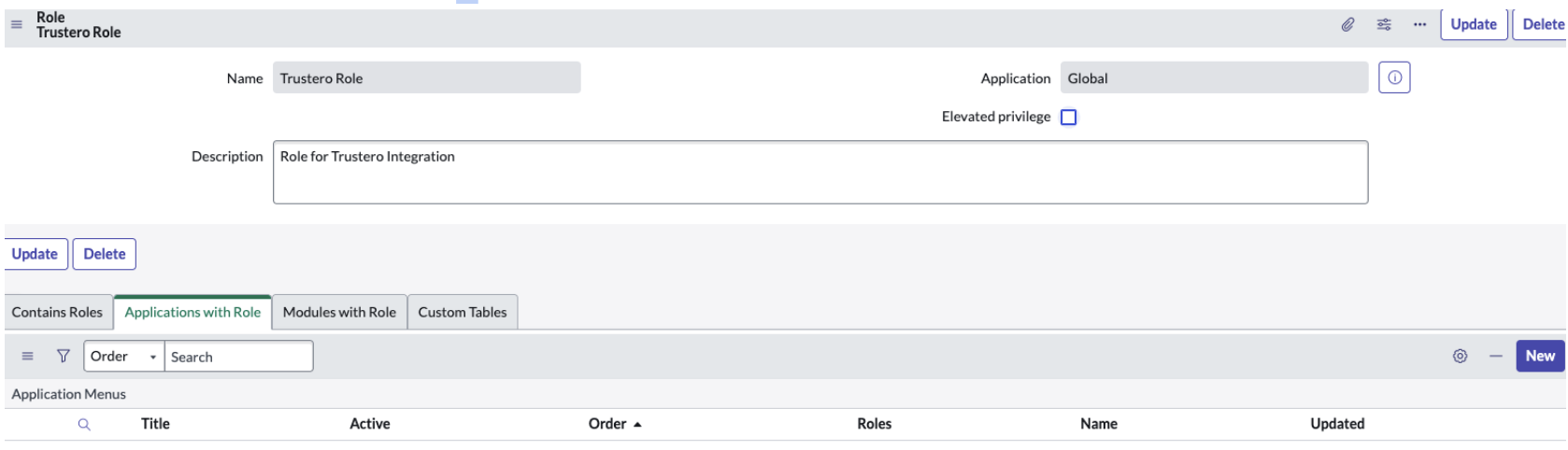 The following procedure ensures that the Trustero service user has least privilege access to the ServiceNow Instance
