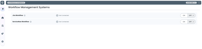 To enable the ServiceNow Workflow Management Integration, navigate to the Workflow Management Systems Page through the Navigation Bar under INTEGRATIONS
