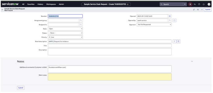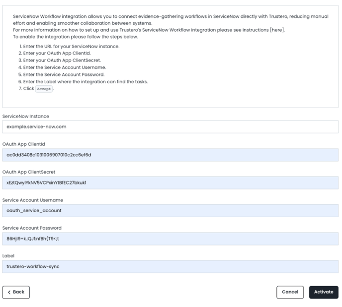 Trustero’s ServiceNow workflow integration allows you to connect evidence-gathering workflows in ServiceNow directly with Trustero, reducing manual effort and enabling smoother collaboration between systems.