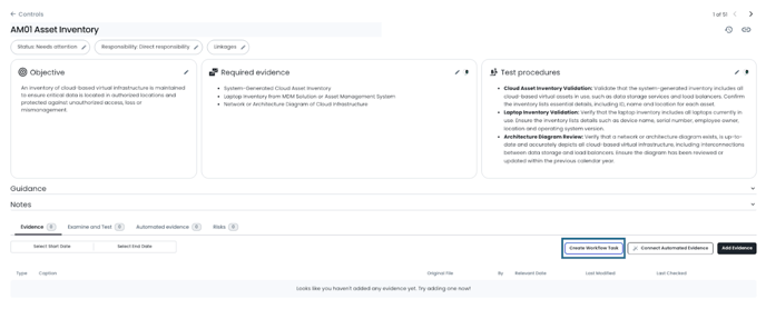 To create a workflow task for a specific control, navigate to the control’s show page.