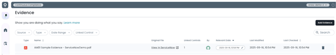 - Create Request for Evidence issues in ServiceNow projects for specific control(s)