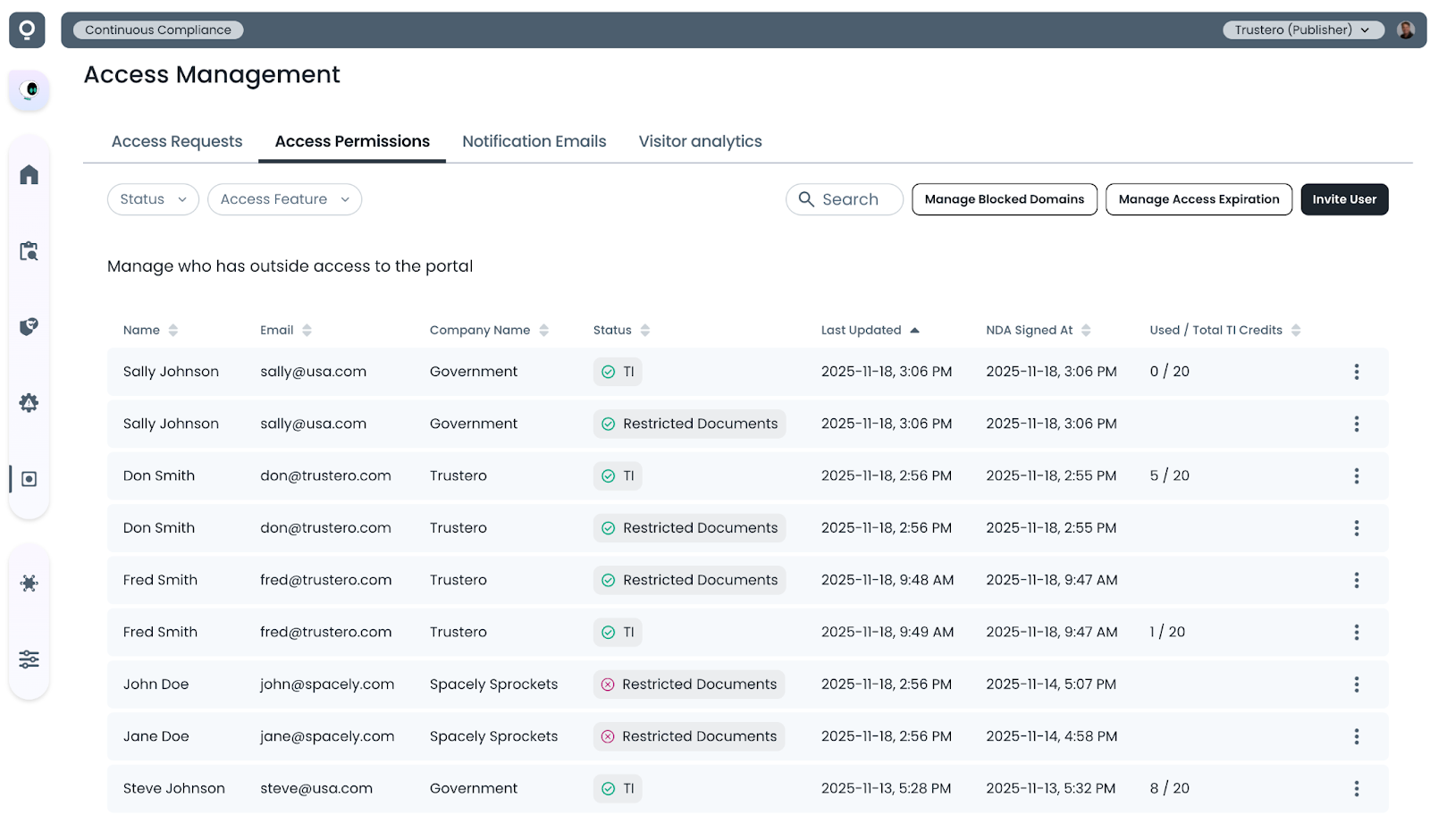 If the Trustero Intelligence feature is enabled for visitors, there may be requests to access the TI functionality separate from accessing restricted documents.